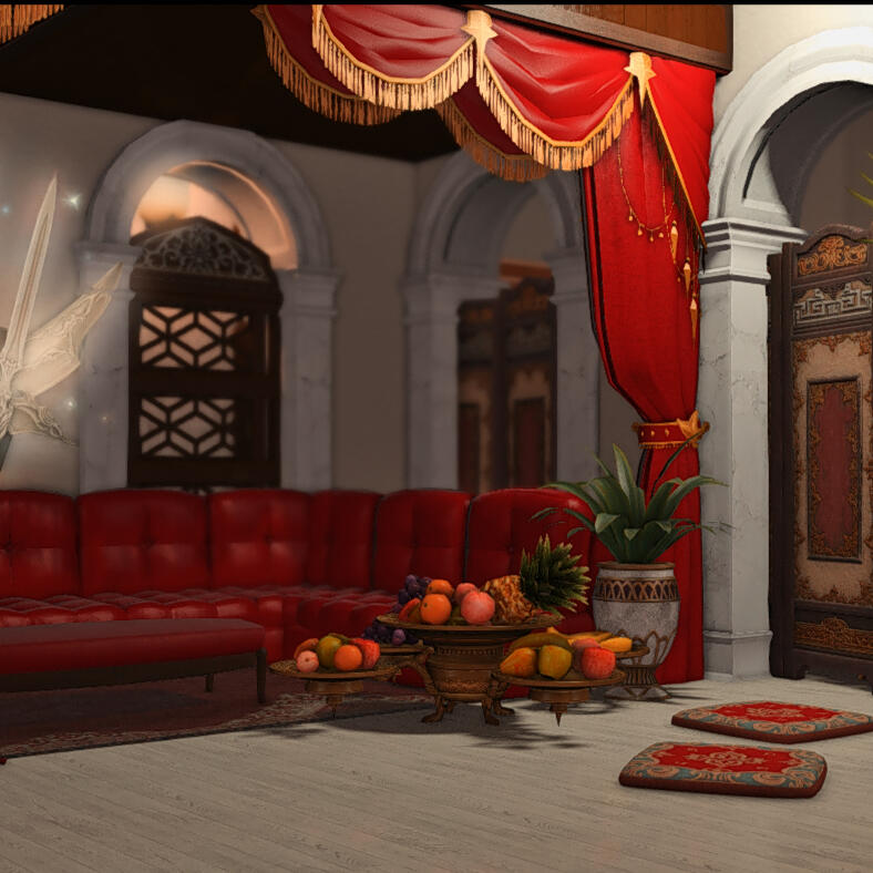 Top FloorLittered with riches and opulence featuring the sturdiest pole crafted in Eorzea. A room to deliver a sensual experience. Best accompanied by a Host that specializes in performances.Strictly no ERP